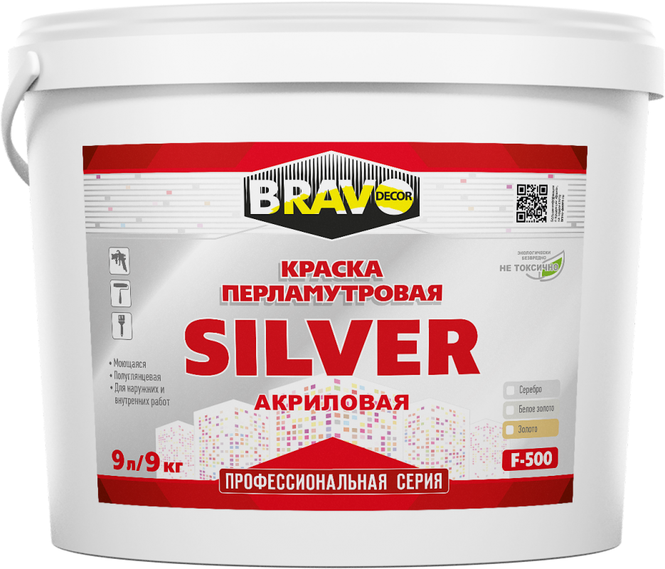 Готовый к применению материал, практически без запаха, нетоксичный, пожаро- и взрывобезопасный, экологически безопасный материал. Краска устойчивая к пожелтению, к воздействию воды и моющих средств. Быстро высыхает. Образует поверхность с блеском благородного металла высокой степени стойкости. Обладает отличной укрывистостью и адгезией. Выдерживает сухую и влажную уборку. Краска не отслаивается, поддерживает в помещении здоровый микроклимат. Покрытие получается ровным и плотным.